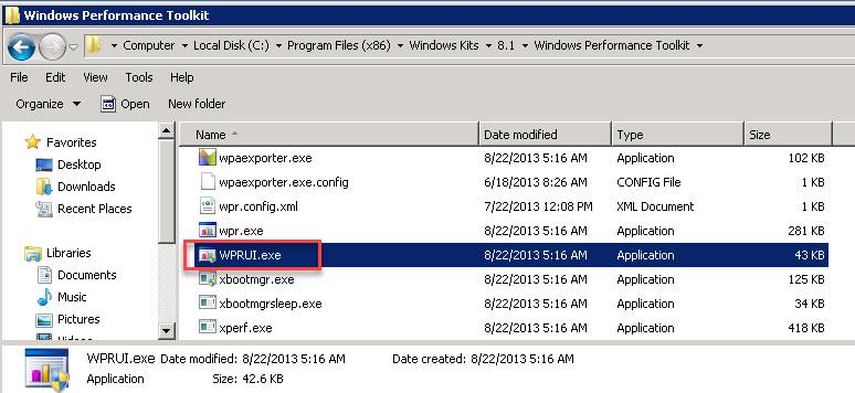1. Windows performance toolkit이 설치 된 아래 폴더로 이동하여 WPRUI.exe파일을 확인 합니다.