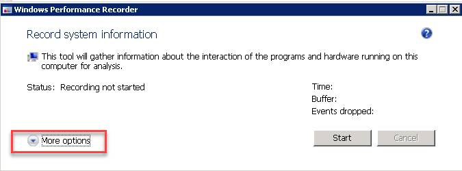 3. WPR이 실행 되면 More options를 클릭 합니다.
